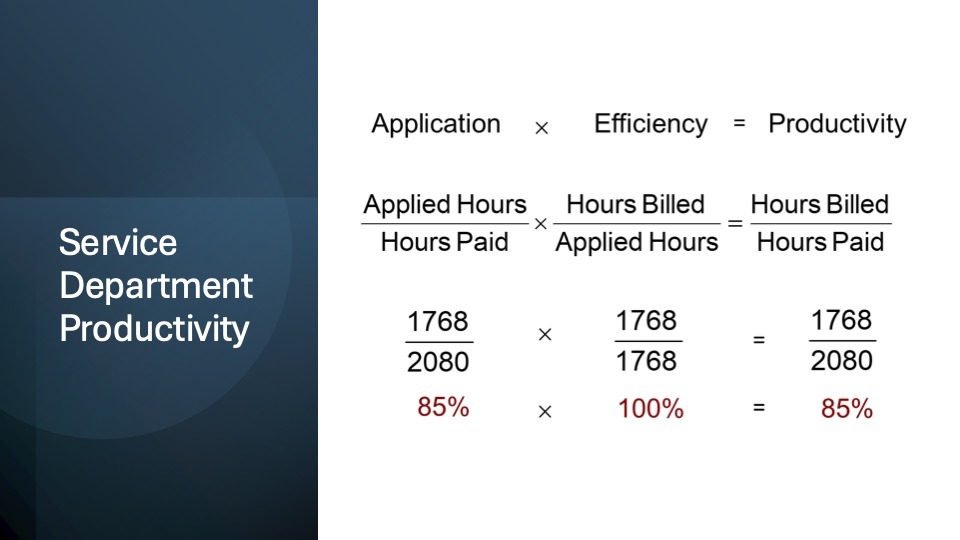 We continuously look for ways to enhance the Currie Model to drive positive results for your Service Department. One such change we’re implementing is: when referring to the Currie Model for Technician Productivity numbers, we have decided to rename them to Service Department Productivity numbers. Productivity numbers such as these should apply to the ENTIRE service department.